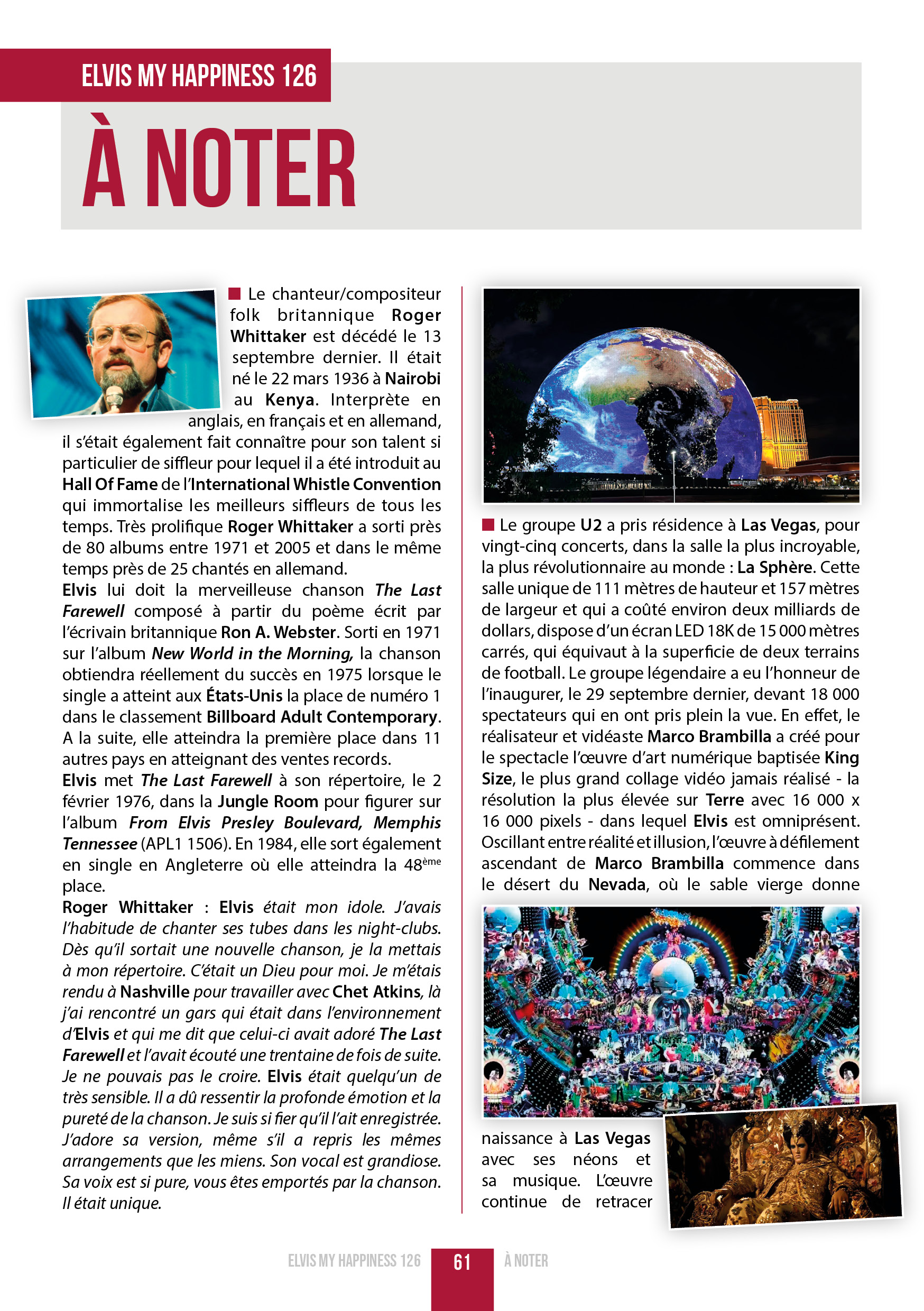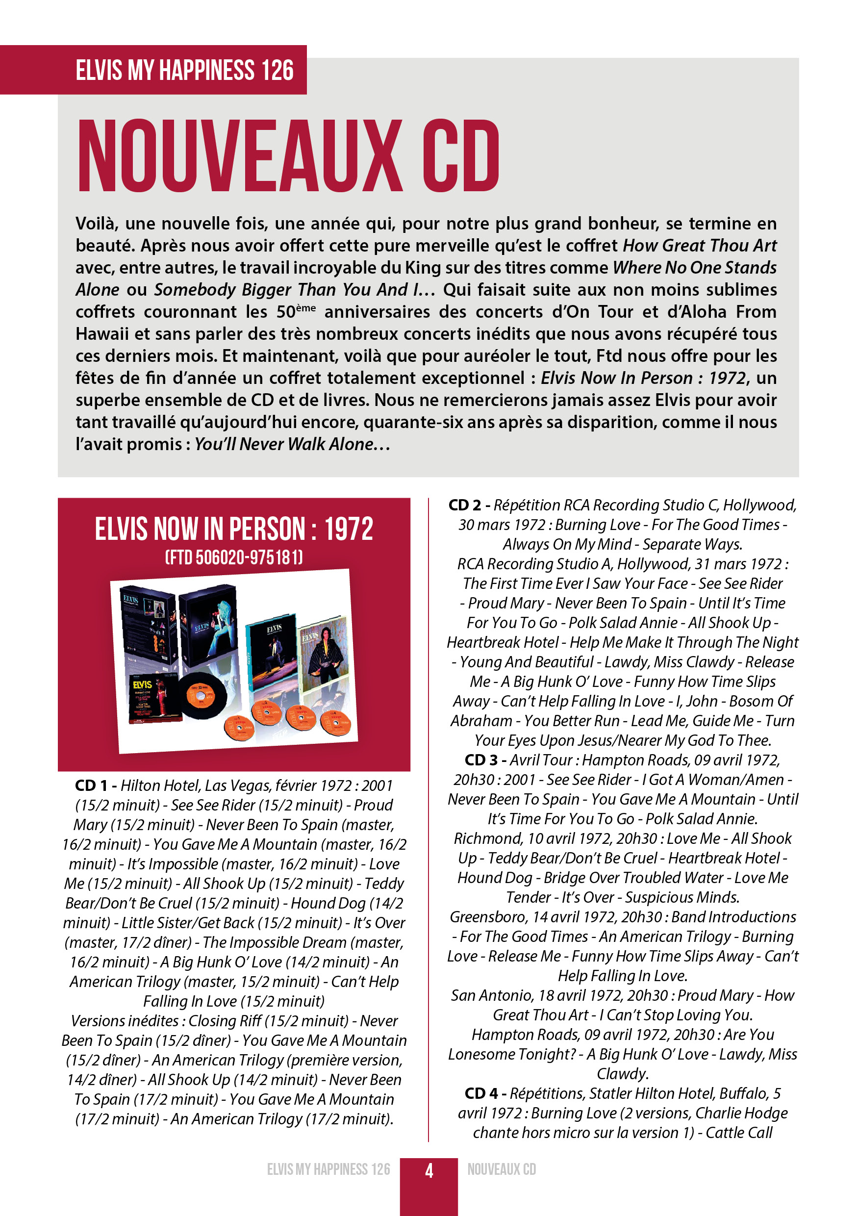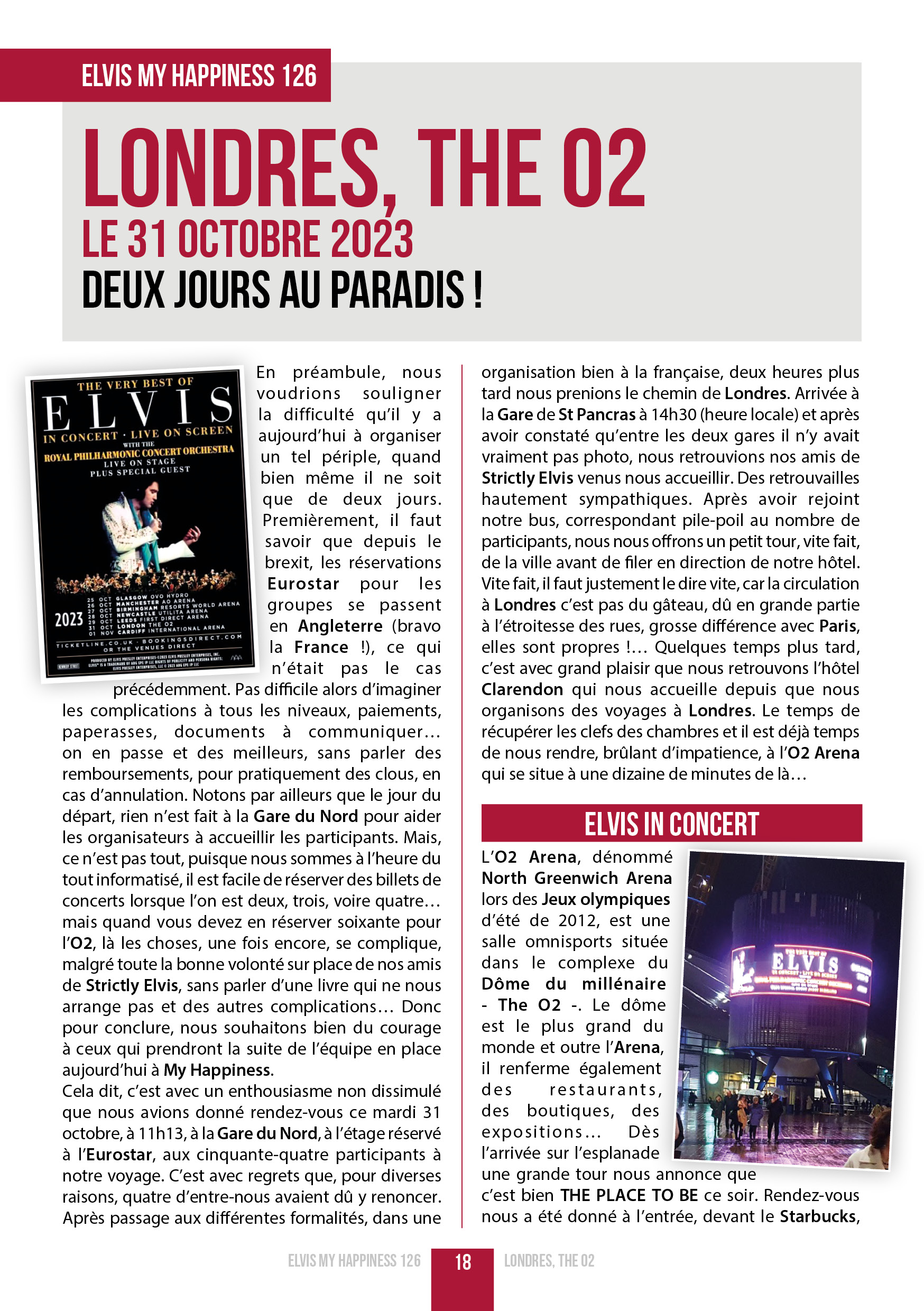Revue N°126 Decembre 2023 SOMMAIRE : « Londres The O2, 31 octobre 2023 » EDITORIAL : « Si je peux rêver d'une terre meilleure » NOUVEAUX CD ELVIS EN FRANCE AUJOURD’HUI LONDRES THE O2 LE 31 OCTOBRE 2023 LA COLLECTION TV GUIDE HISTOIRES EN IMAGES « Memphis, 9 septembre 1974 » BARBARA HEARN UN SHOW AVEC ELVIS « Portland, 11 novembre 1970 » A NOTER PRISCILLA LE FILM Free Lightbox Gallery
