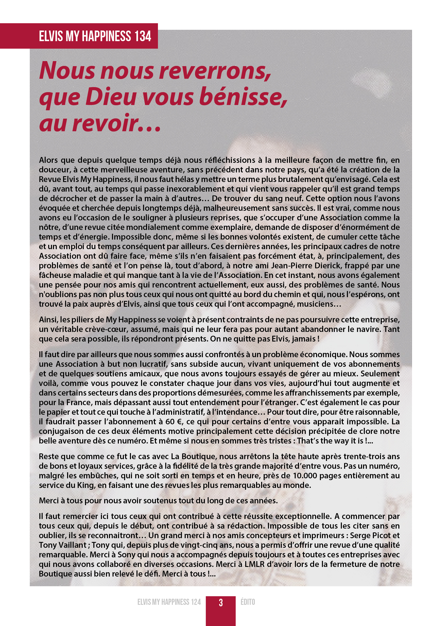 INFORMATION IMPORTANTE CONCERNANT LA REVUE EMH