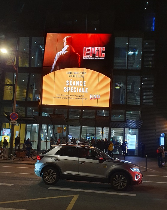 Pour preuve, le Pathé Alésia qui avait prévu de passer le film dans une petite salle, a devant l’affluence pris la décision de le projeter dans une salle plus grande. Bien lui en a pris, car celle-ci était quasiment pleine avec un public, de tous âges, très réceptif, et qui le film terminé a applaudi longuement. Bon nombre d’adhérents à My Happiness étaient présents, parmi eux notre ami Ricky Norton, enthousiasmé, lui aussi, par la prestation du King et qui le confiera au micro. Le jeu des questions/réponses animé par Alexis Cathala s’est déroulé dans une ambiance bon enfant, où ont été évoqué de nombreux sujets : sur la vue et la carrière du King, sur cette osmose incroyable entre le King et ses musiciens, sur sa non venue en Europe, son travail en répétitions et sur scène… et, notamment, sur le voyage 2027 pour lequel Ulrich Dumérin a apporté quelques précisions… Des instants hautement sympathiques qui fera dire à un spectateur : C’est le meilleur show que j’ai jamais vu ! et pour lesquels nous remercions très sincèrement Diane Horth son organisatrice, qui nous avouera qu’il s’agit de la meilleure Séance Spéciale de ces derniers temps et qui nous dira que dès que l’occasion se présente, elle était prête à en organiser une nouvelle. Merci à tous pour avoir démontré, une fois de plus, qu’Elvis, comme partout ailleurs, est incontournable en France !...
