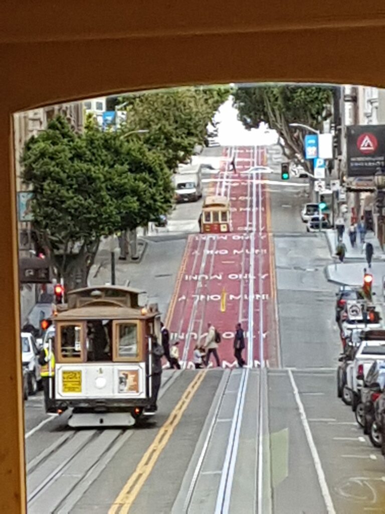 Mercredi 17 août. Après un dernier petit déjeuner, le groupe, non sans tristesse, le temps passe si vite, quitte notre hôtel pour l’aéroport de Memphis où notre départ pour San Francisco, via Salt Lake City, est prévu à 7h45. Après deux vols sans problème, nous arrivons San Francisco à 12h38, nous avons à présent 9h de décalage avec Paris. Nous logeons pour trois nuits à l’hôtel Hyatt Regency. Notre programme pour les jours à venir est chargé : Tour panoramique de la ville, Golden Gate Bridge, Sausalito, Muir Woods, visite en Cable Car pour Fisherman’s Wharf