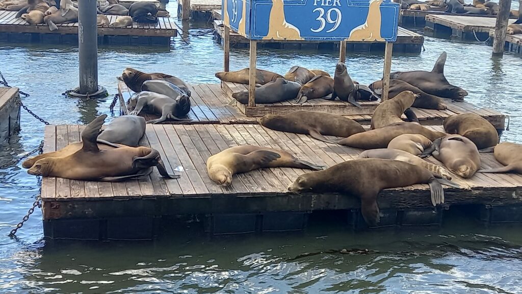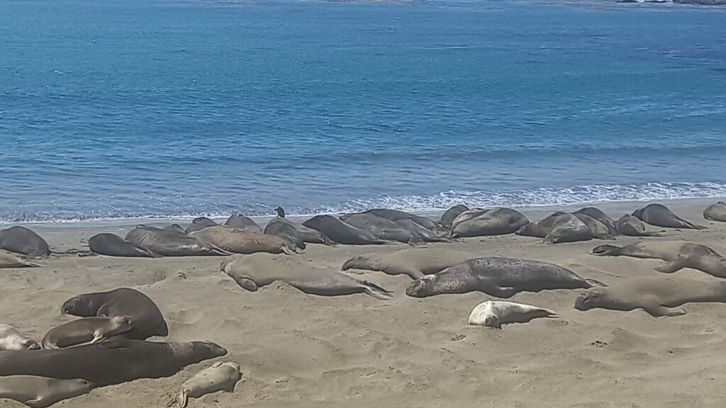 Mardi 23 août. Départ à 9h30 pour Paso Robles par une belle route sillonnant le long de la corniche qui longe l’océan. Arrêt à la plage de San Simeon, habitat des énormes éléphants de mer et de phoques qui se recouvrent de sable avec leurs nageoirs avants. Puis arrêt à Moro Beach pour déjeuner, puis promenade digestive sur les pontons et dans le centre-ville. Paso Robles est connue pour ses sources thermales, ses bains de boue et pour ses vignes. Nous logeons au Oxford Suites Paso Robles où Ulrich et Natacha organisent une sympathique veillée, autour de quelques verres de bière et d’un brasero (comme s’il ne faisait pas assez chaud !). Les discussions sont allées bon train, surtout sur Elvis, jusqu’à une heure tardive…