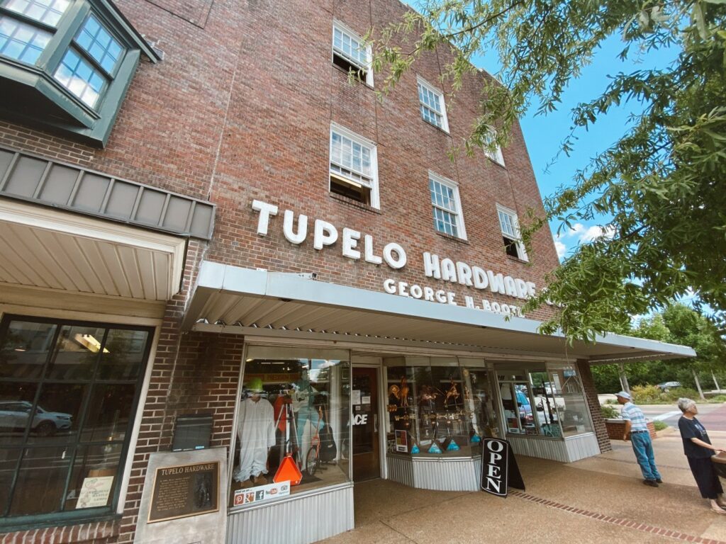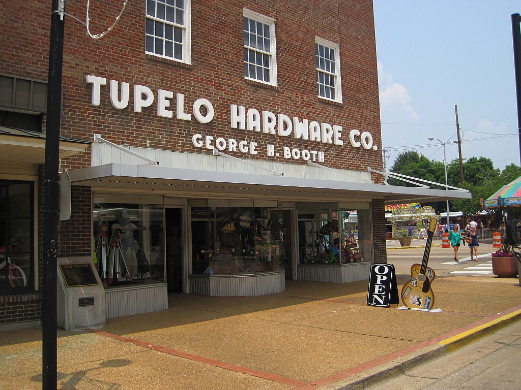 Bonne nouvelle ! Alors qu’il y a quelques jours les propriétaires, la famille Booth, de la quincaillerie Tupelo Hardware Store annonçaient sa fermeture pour le 31 décembre prochain, il semble à présent qu’une solution a été trouvée. En effet, la municipalité c’est immédiatement inquiété des conséquences de celle-ci sur le tourisme, et la décision, suite au vote unanime du conseil municipal de Tupelo, a été de plaider pour le rachat de deux des trois bâtiments abritant Tupelo Hardware Company, ainsi que du parking de Court Street adjacent. Le maire de Tupelo, Todd Jordan : Tupelo Hardware Company est un élément important de l’histoire de Tupelo. L’acquisition de ces bâtiments historiques garantit la pérennité de l’histoire de notre ville et permettra aux habitants et aux visiteurs du monde entier de toujours franchir les portes du 114 West Main Street… Le magasin a été fondé en 1926 par George H. Booth et il a joué un rôle essentiel dans la vie d’Elvis : c’est là que Gladys lui a acheté sa première guitare en 1946, pour son onzième anniversaire.