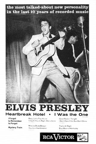 Le mardi 27 janvier, soit tout juste 15 jours après son enregistrement, a lieu ce qui est sans doute l’événement le plus important de toute l’histoire de la musique populaire. RCA sort le premier single (47.6420) d’Elvis, Heartbreak Hotel/I Was The One – enregistrée en fin de session. Il sera suivi en mai du 4 titres éponyme (EPA 821). Ce disque, c’est une bombe ! En tout juste un mois, Heartbreak Hotel va se retrouver pendant 8 semaines n°1 au Billboard, où il reste 27 semaines. Il sera nommé meilleure vente des singles de l’année, disque d’or, puis disque de platine, et dépassera rapidement les 3 millions d’exemplaires. En outre, il atteindra la première place du Country Chart et se placera n°5 dans le Rhythm & Blues. Il deviendra ainsi, après Blue Suede Shoes de Carl Perkins, le deuxième artiste à placer un titre dans les trois classements. Le single sera suivi en mai du 4 titres Heartbreak Hotel (EPA 821) qui obtiendra la certification or.