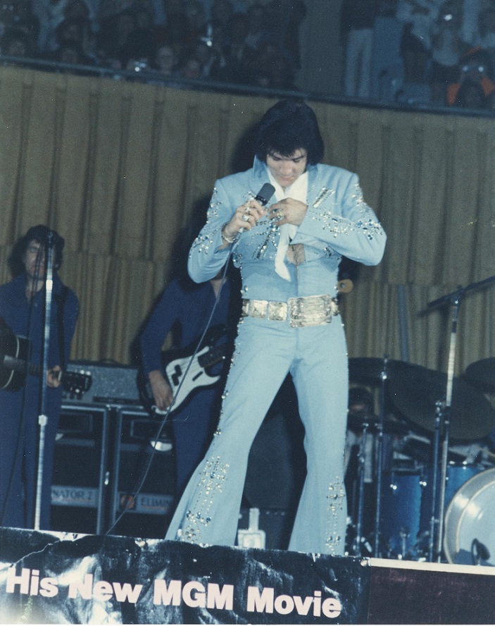 Le 15 novembre 1972, alors que le temps est nuageux et que la température est de 16°, Elvis Presley donne son second show à Long Beach en Californie. La veille, le show qu’il a donné dans la même salle, la Long Beach Arena, où il portait l’Aztec Star – surnommé également le Tiffany suit – a été grandiose et, tout comme ce soir, il était Sold Out. Lisa-Marie est présente en compagnie de Linda Thompson.